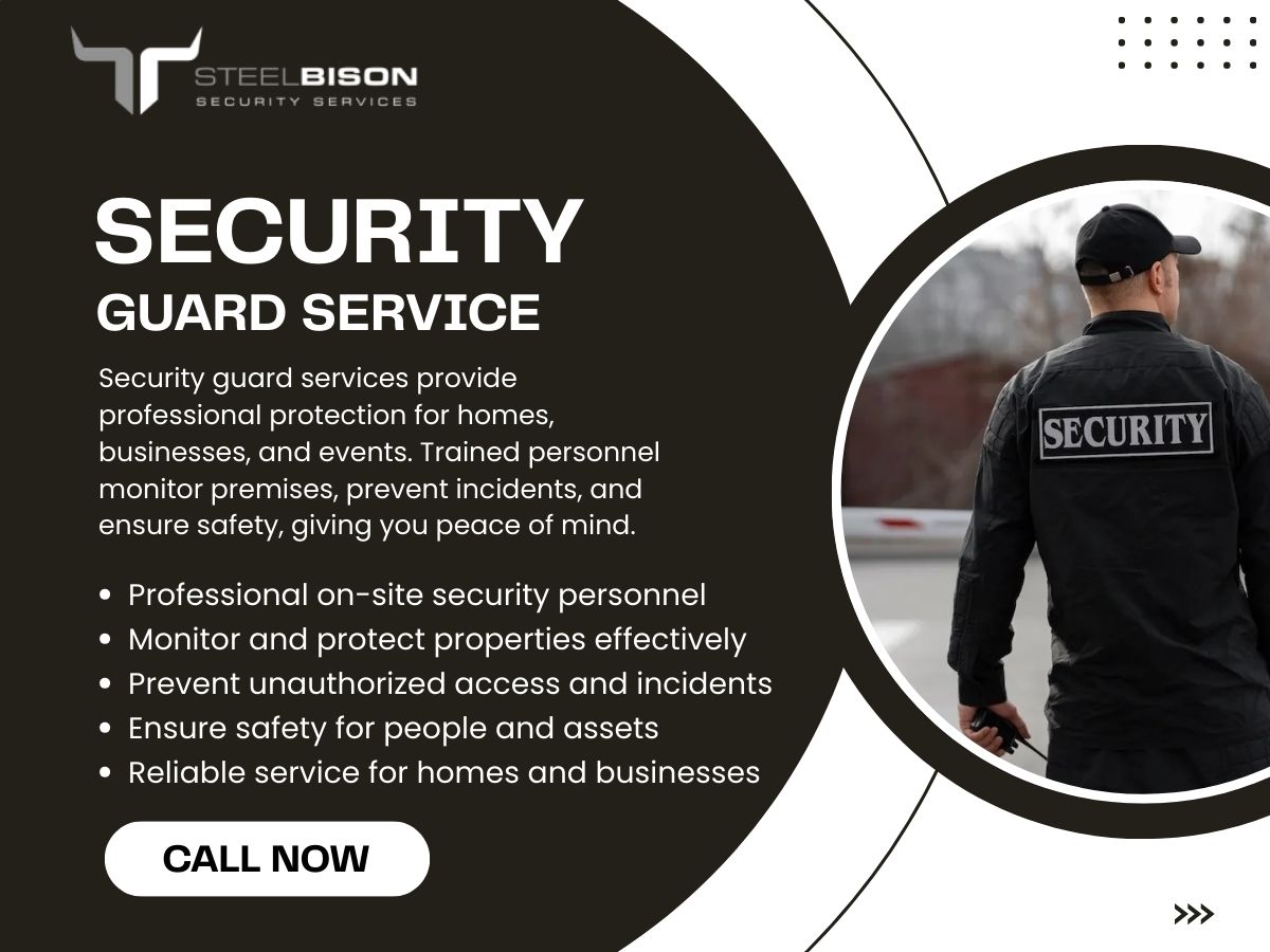 Steel Bison Security LLC provides premier security solutions in Bellevue, WA and nearby areas. We specialize in Active Camera Surveillance, Unarmed Security, Armed Security, Security Camera Monitoring, and Remote Video Surveillance. Our expert team delivers comprehensive protection for businesses, residential properties, and events throughout Bellevue. With cutting-edge technology and highly trained professionals, we ensure real-time monitoring and rapid response. Trust Steel Bison Security LLC for reliable, professional security services tailored to your needs. Contact Steel Bison Security LLC today for professional protection and security services.